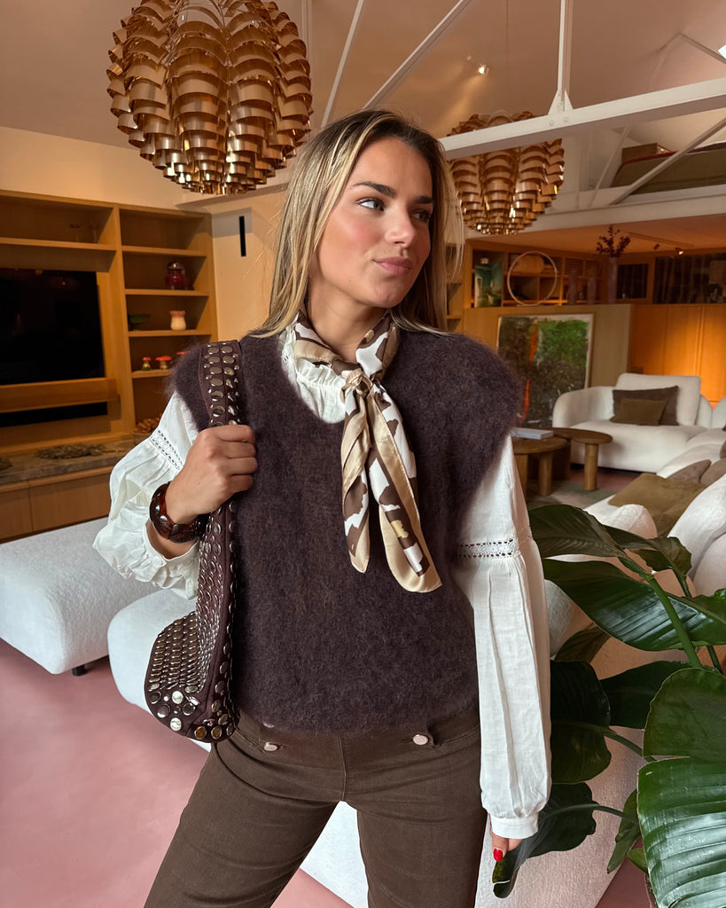 Pull chocolat col v - DADJI