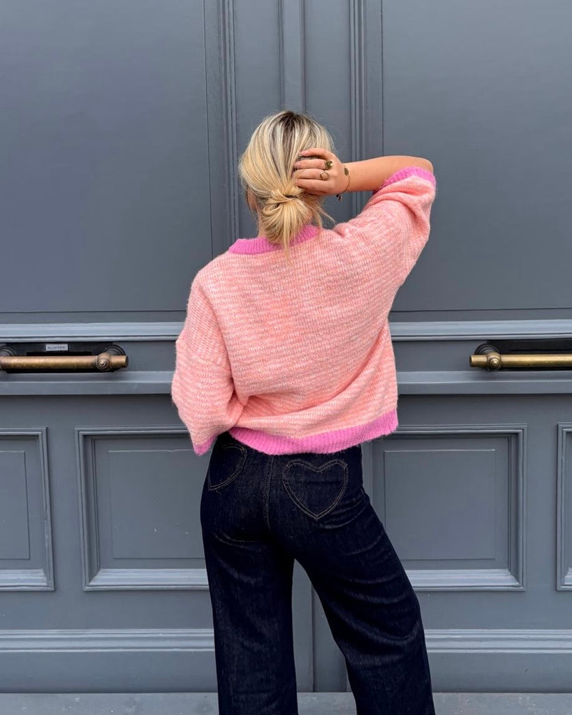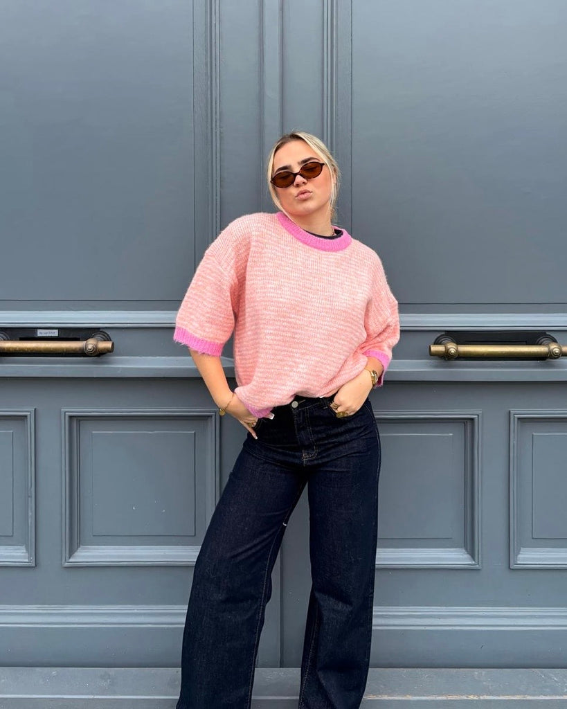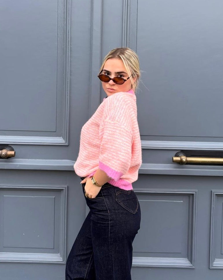 Pull rose à manches courtes - KAM