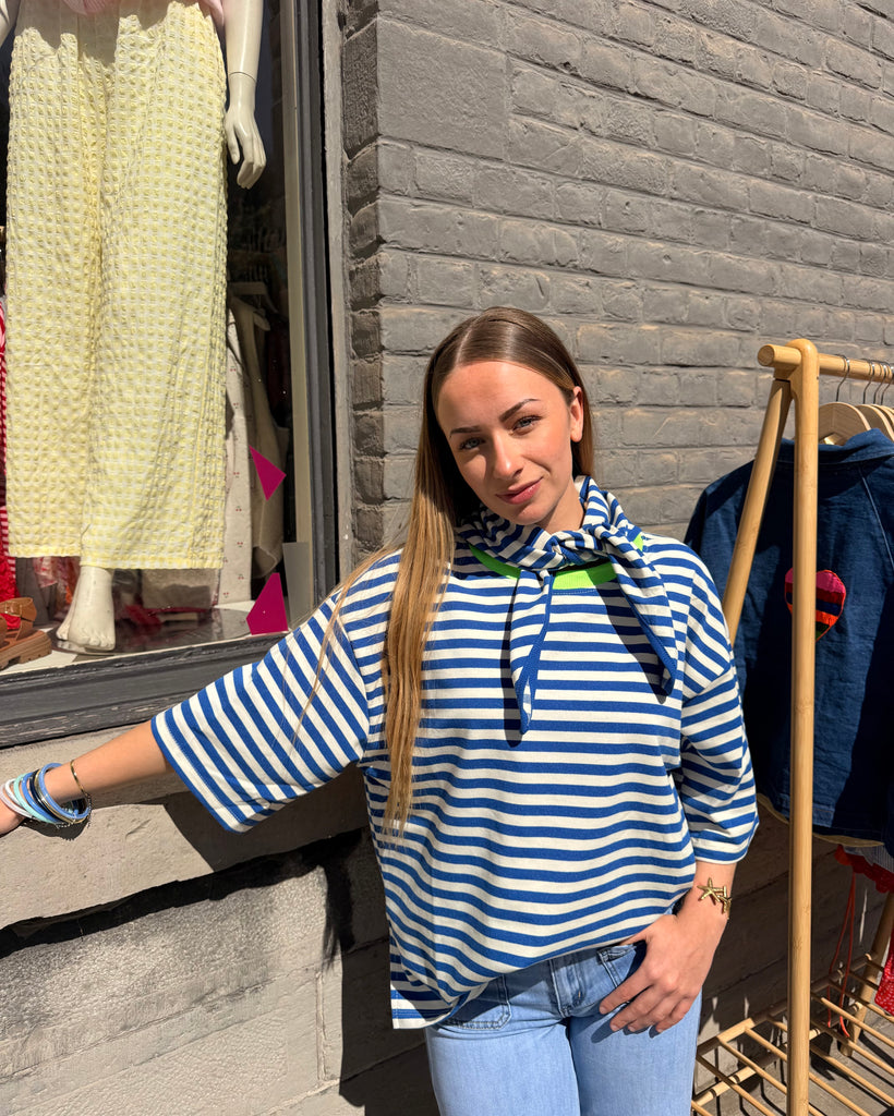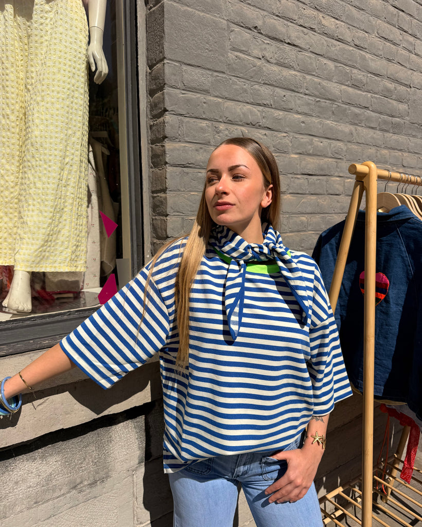 T-shirt ligné + foulard - BLEU/VERT